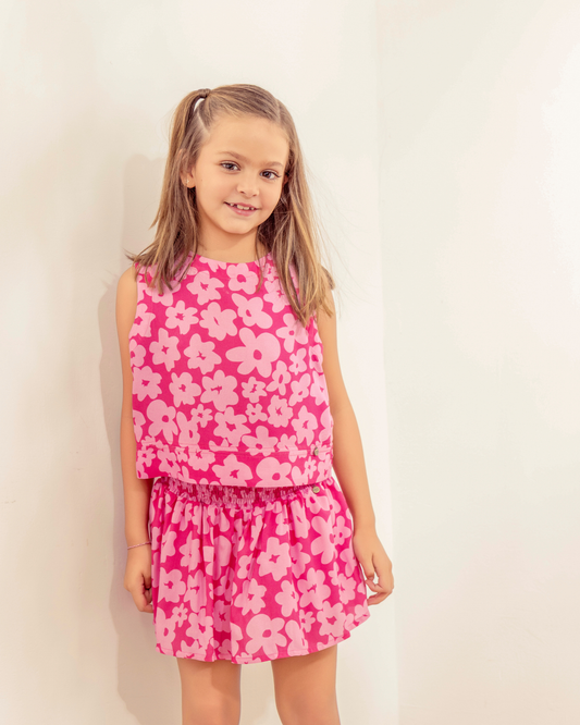 Pollera Bruna Flores Rosa